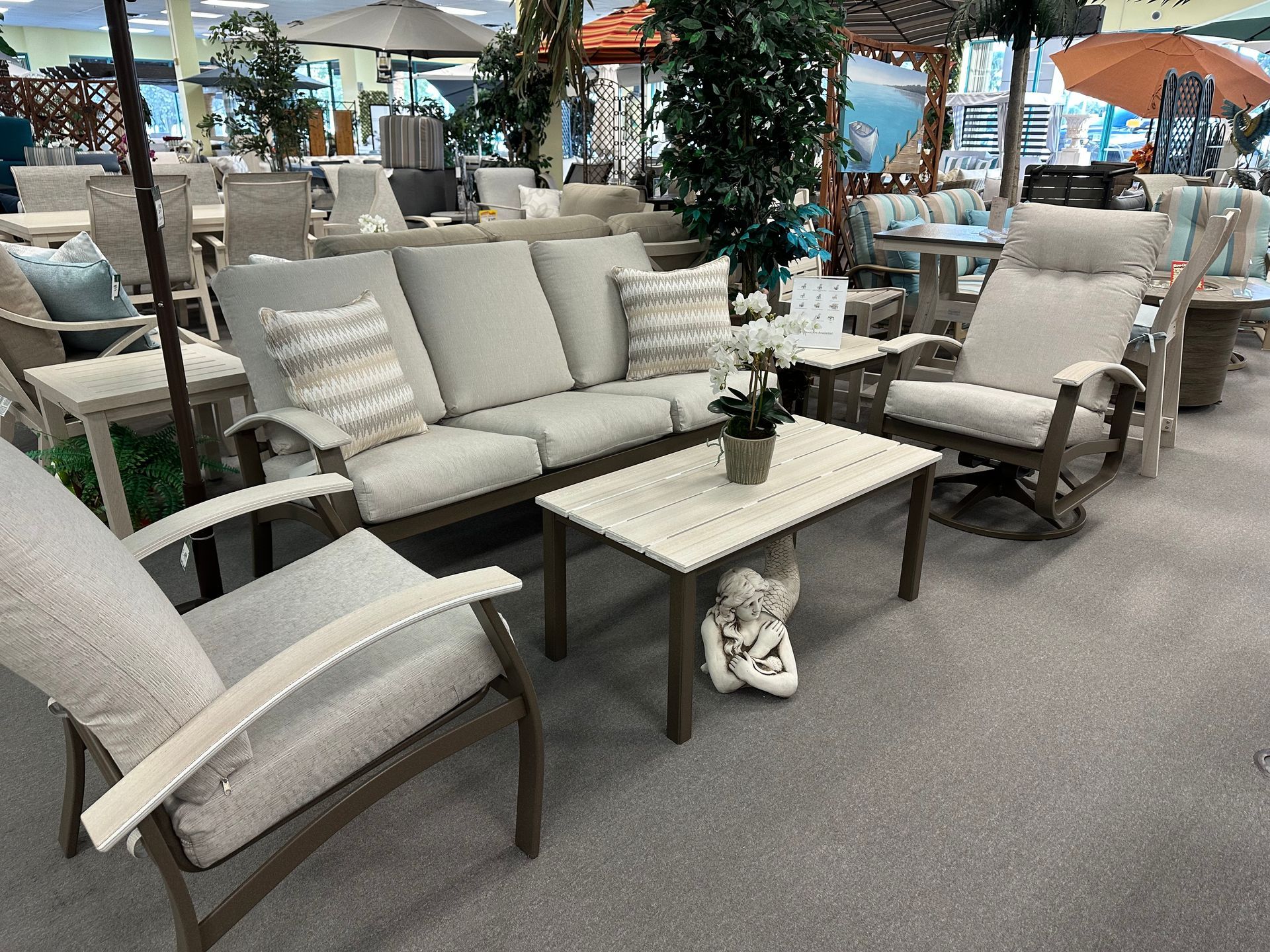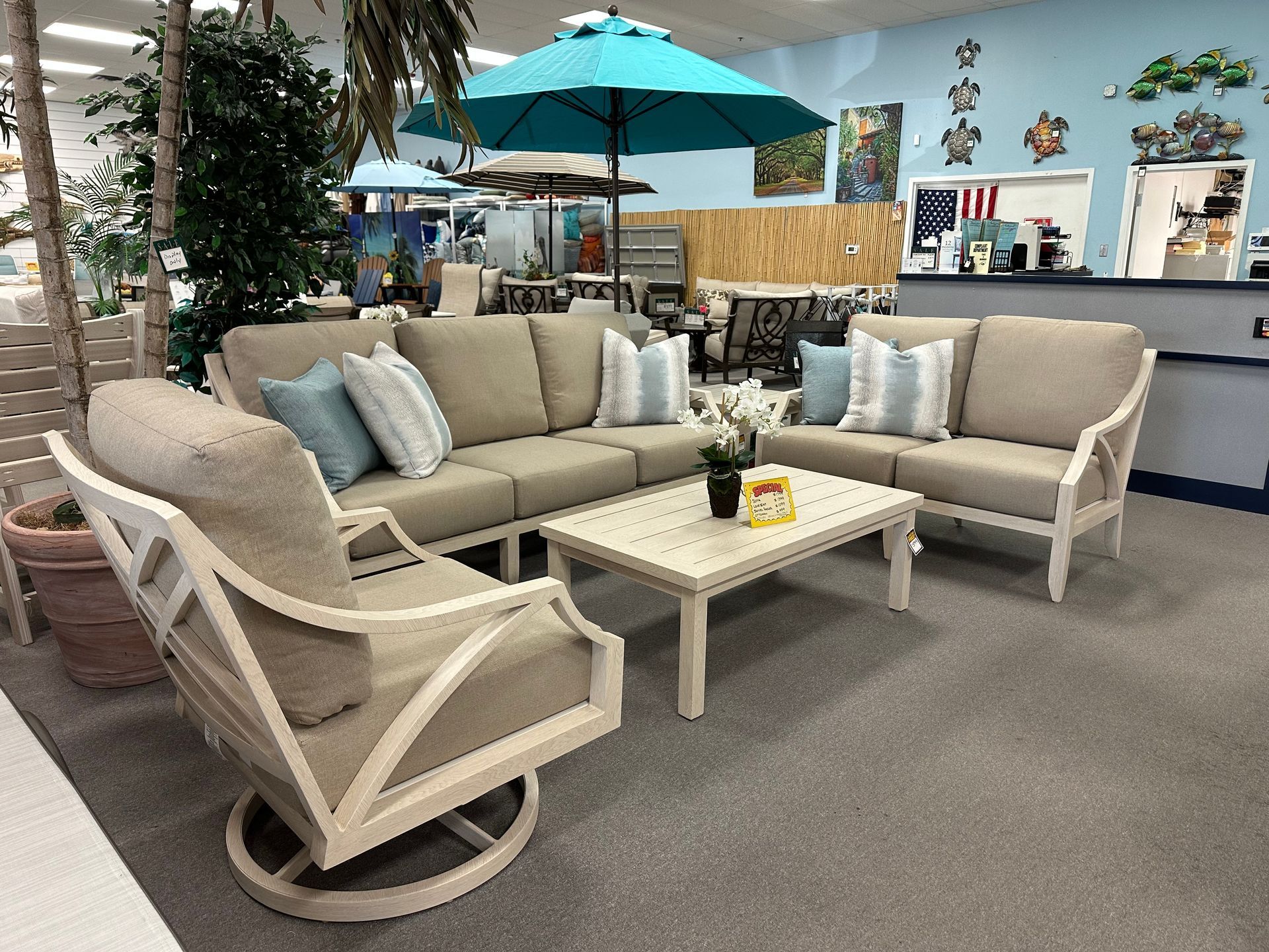 We invite you to visit one of our beautiful 11,000 sq ft showrooms to shop hundreds of quality patio furniture products. You will quickly see that the Patio Shoppe of Coral Springs and The Palm Beaches have BY FAR the largest selection around! We dedicate our entire showroom to only patio furniture and accessories. After over 40 years in business, we will ONLY offer products that are built to last in direct Florida weather. Our family is very proud of the quality and huge selection of patio furniture collections we have to offer. We have seating and dining options for all styles, and budgets. Let our experienced, knowledgeable sales & design staff help you create a beautiful backyard living space that you will never want to leave! Below is just a sneak peak to what you will experience when you visit our showrooms. Our showrooms are a MUST SEE!