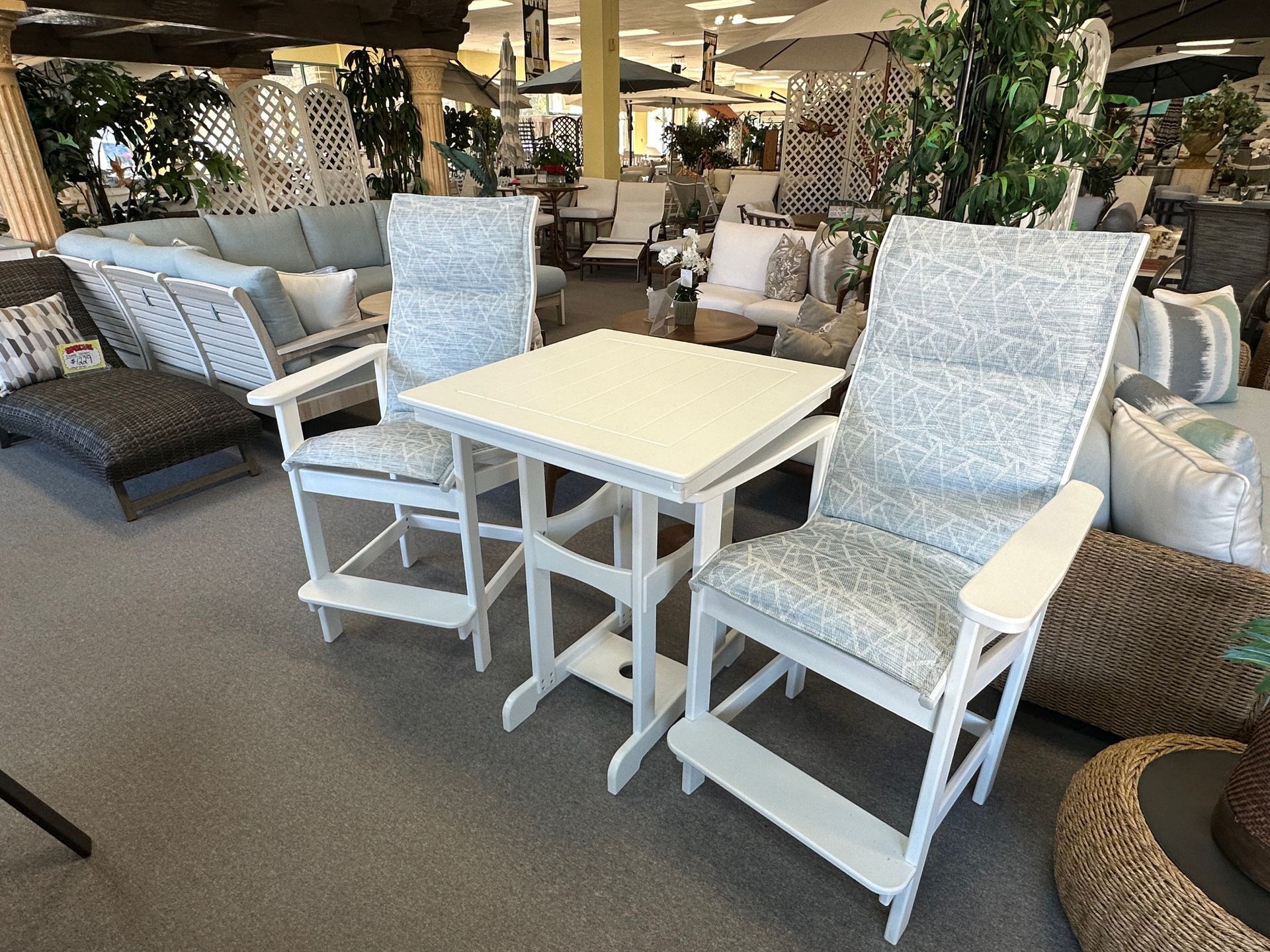 Here at the Patio Shoppe of Coral Springs and The Palm Beaches we have been told by many customers over the years that we have by far the largest selection of smaller scale balcony furniture. Long narrow areas may be a challenge for others, but not us! Below are just a few of the many options we offer AND stock for immediate delivery. Whether you want to dine just high enough to look over your railing, or if you need something small scale but comfortable to sink into to enjoy your view at the end of a long day, we have just what you are looking for!